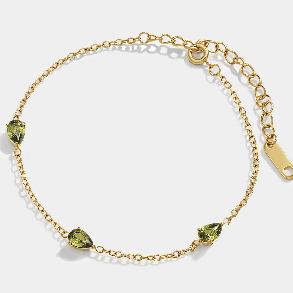 Bracelet Bizou, pierres vertes, or, en acier inoxydable