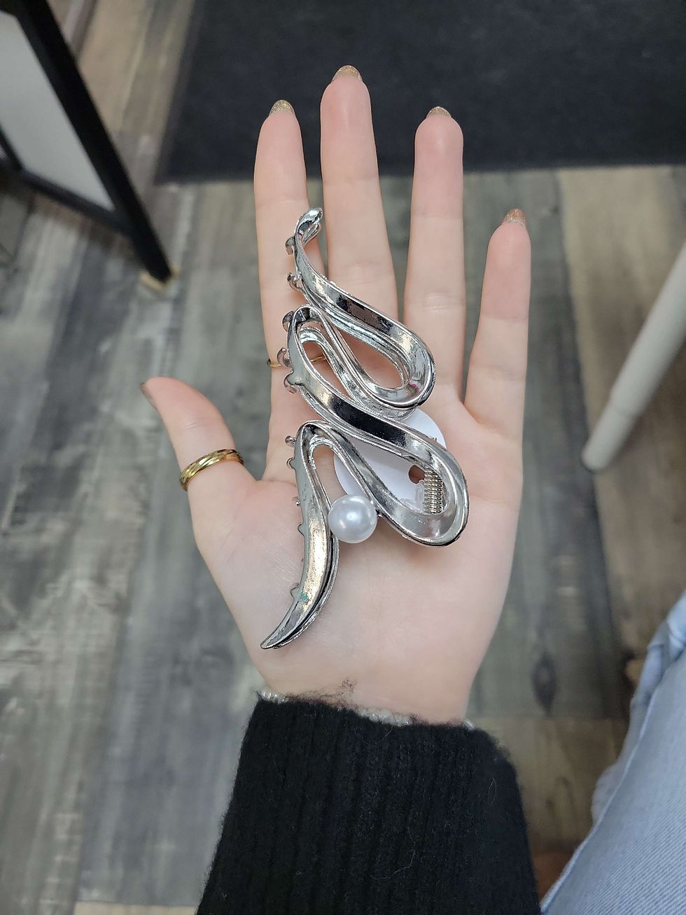 Pince à cheveux argent, avec perle blanche